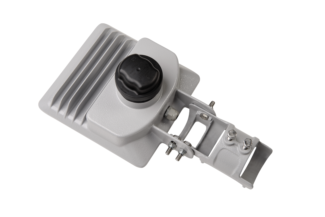 Corpo em alumínio injetado, unindo design moderno e robustez. Com alta eficiência e longa vida útil, garante economia, durabilidade e versatilidade, sendo compatível com relé fotoelétrico, telegestão e braço ajustável.